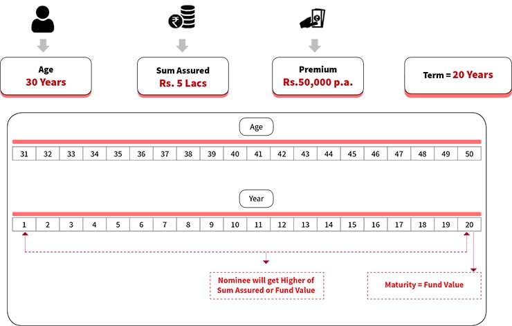 - This plan offers the risk cover equal to 10 times of annualized premium