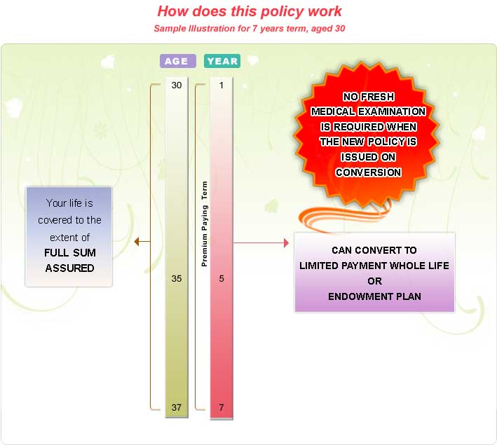 - Convenience : No fresh medical examination is required when converted to whole life or endowment plan