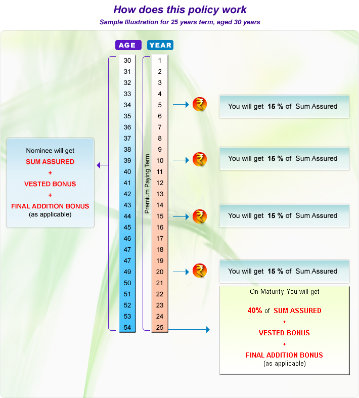 FULL Sum Assured + Bonus + Final Addition Bonus (as applicable) even if Survival Benefits are already paid.